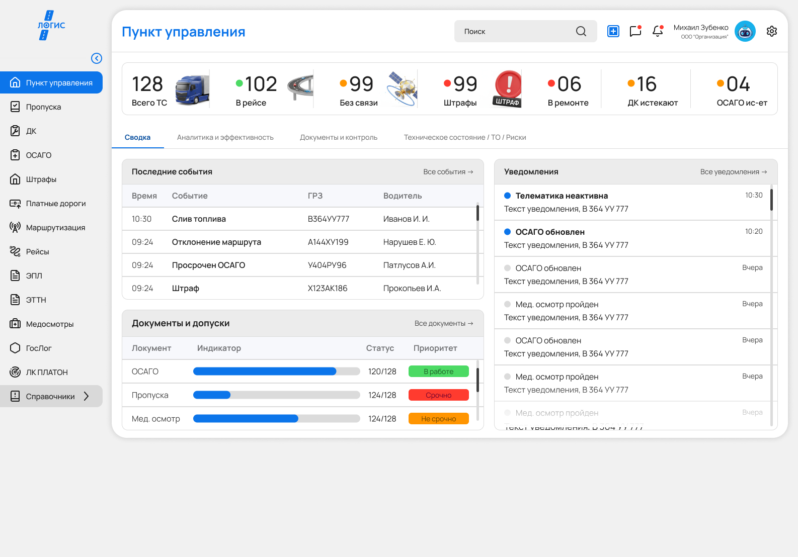 Документы, маршруты, штрафы, риски и реальная экономика рейсов — теперь в одном окне. Инструмент для собственников, логистов и бухгалтерии.